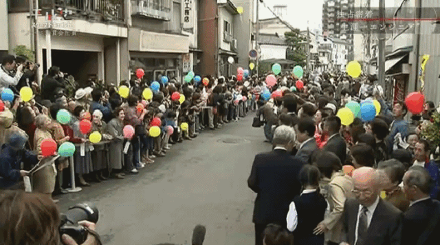 夾道歡迎的粉絲們甩動氣球彩帶,